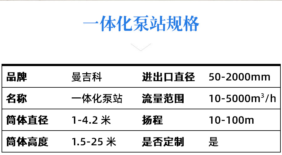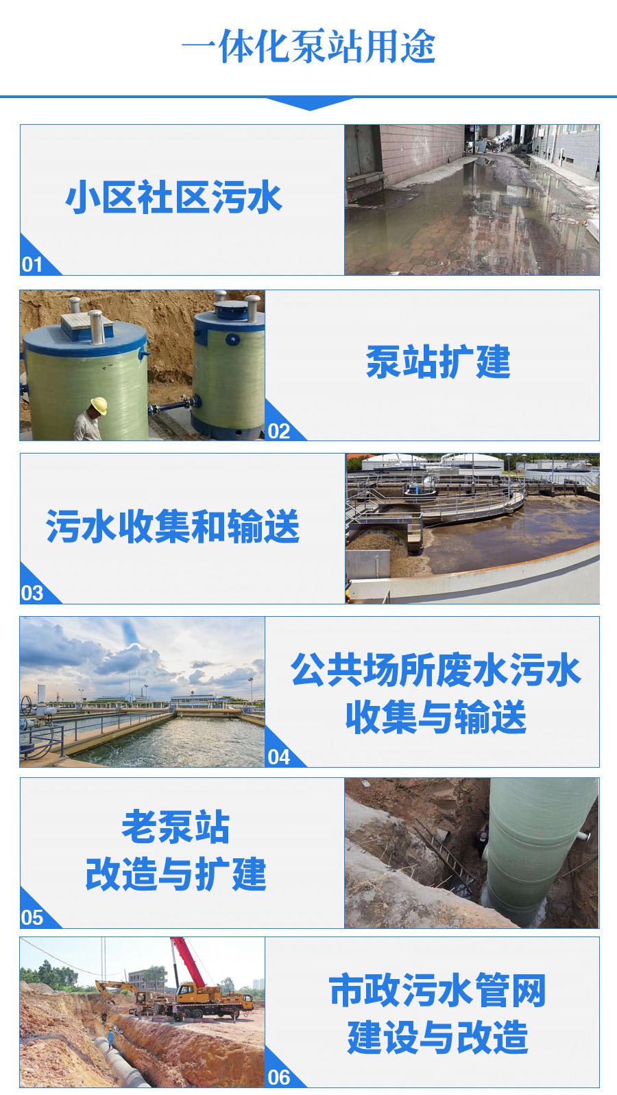 玻璃鋼一體化泵站是解決無自流條件下的排灌、供水和水資源調配問題的*動力來源,隨著國家基礎設施建設和城鎮化進程的加快,傳統混凝土泵站也日益暴露出它自身難以克服的缺點。一體化預制泵站為地埋式,泵站主體由井筒、潛污泵、耦合裝置、管道、閥門、液位傳感器、控制系統、格柵和通風系統等部件組成。是一種使用方便,質量可靠,土建工作少,成本較低的新型一體化泵站設備,可以作為中小型混凝土泵站的替代品玻璃鋼一體化預制泵站適應場所:適用于收集和排放住宅小區、飯店、學校、工廠、部隊營房和其它公共場所的污水廢水等,主要安裝于室外地下。